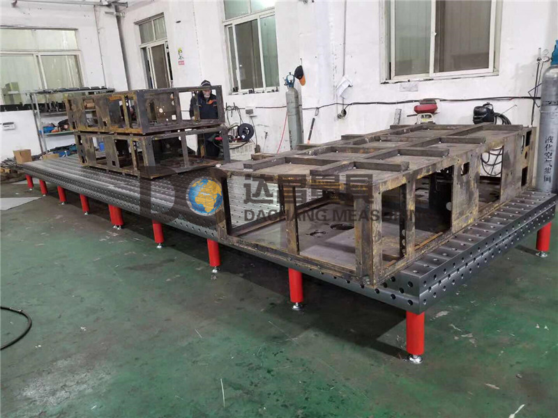 三維焊接平臺不僅僅是一個簡單的臺子,它的工作面跟上面的孔都是有精度的,工作面的平面度為每米10絲,孔距的誤差是±0.05mm,孔直徑的誤差是+0.1,只有各項精度都達到標準才能保證焊接的誤差。