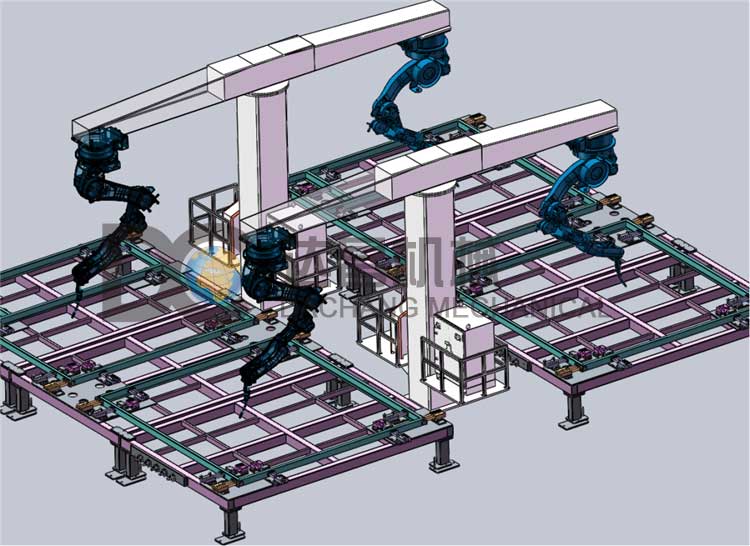 1.操作人員將工件放置在工位一上,按下預約啟動按鈕后,機器人開始焊接作業。