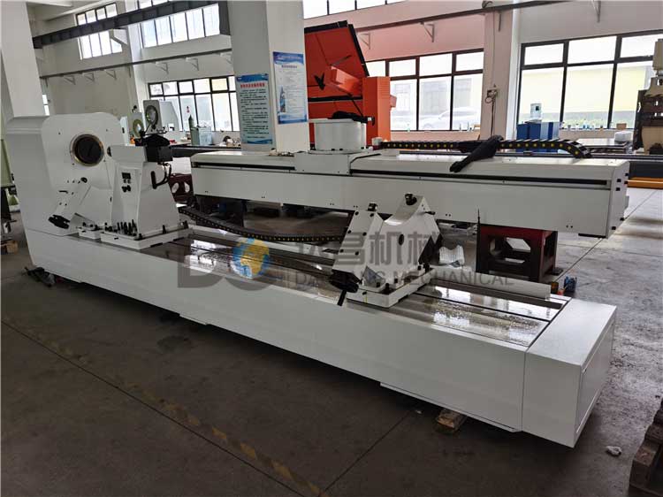 激光熔覆變位機用于長4000mm,重300Kg,直徑1000工件旋轉激光熔覆加工。激光熔覆變位機由基礎焊接底座、帶卡盤旋轉主軸箱、可以移動并定位的液壓尾頂、用于工件旋轉支撐的可調托輥,以及相關粉塵防護等組成。主軸轉速100r /min(1T以下100rpm,1T以上30rpm),主軸夾持三爪自定心卡盤500,液壓尾頂可以在基座上滑動定位并鎖緊(手動)尾頂的伸縮采用液壓驅動行程80用于工件的夾持上下料,液壓尾頂帶壓力檢測和顯示,并配帶MT5的活頂尖,保證在熔覆過程中頂出力恒定,托輥用于長工件的輔助支撐(數量2),可適用工件直徑200500.并可以在底座上滑動并鎖緊固定,主軸中心高距離地面900-1000。變位機包含液壓尾頂用的液壓站及相應的管線和調節控制閥1套。液壓站離拖鏈管線進口約1.5米。